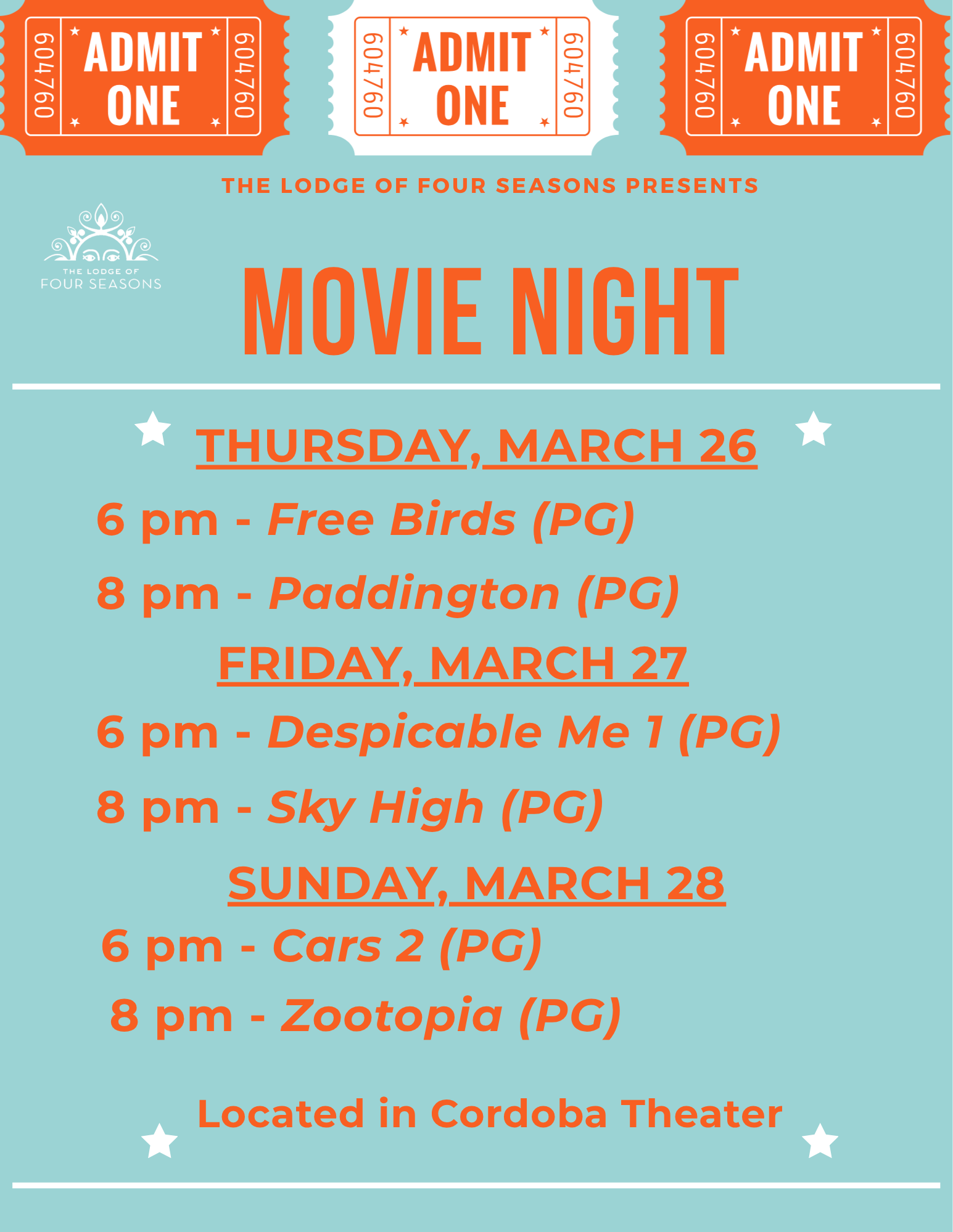 Movies at the Lodge